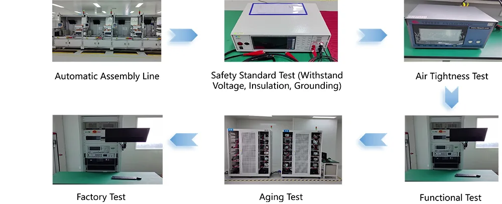 Das Produkt verfügt über maßgebliche Zertifizierungen im In- und Ausland, darunter CCC (China Compulsory Certification), CE (Europäische Union), UL (USA) und EN50498. Es entspricht den Standards NB/T33001-2025 und GB31241-2014 und gewährleistet so elektrische Sicherheit und elektromagnetische Verträglichkeit. Wir verfügen über eine moderne Produktionsbasis und verwenden ein flammhemmendes ABS+PC-Verbundmaterialgehäuse mit der Einstufung V0 und Leiterplatten aus FR-4-Glasfaser. Wichtige Lötverbindungen werden mithilfe der Wellenlöttechnologie hergestellt und haben strenge Tests wie 5.000 Einsteck-/Ausziehzyklen, Vibrationsfestigkeit und Salzsprühkorrosionsbeständigkeit bestanden. Jedes Gerät durchläuft vor Verlassen des Werks einen 72-stündigen Alterungstest unter Volllast und erreicht so eine Qualifizierungsrate von 100 %. Wir haben ein umfassendes Qualitätskontrollsystem eingerichtet, das eine vollständige Rückverfolgbarkeit von der Rohstoffbeschaffung bis zur Lieferung des fertigen Produkts ermöglicht.